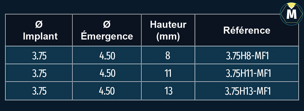 • 1 foret cortical pour les implants hauteurs 8, 11 et 13 (émergence 4.50)